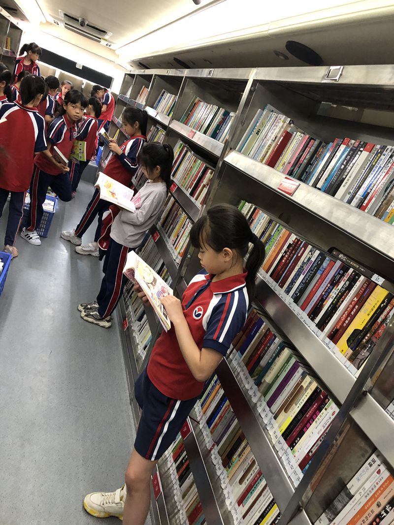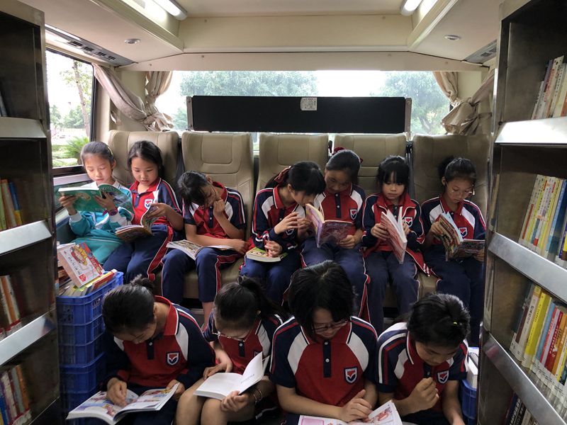 远看是巴士,近看则是少儿流动图书馆。巴士内部经过特殊的设计,两侧摆放了书架和书,并且还设置有阅览空间。巴士空间宽裕,既有阅读座位,又有空调冷气,选书也十分新颖有趣,贴近少儿阅读需求,整个阅读体验非常舒适。