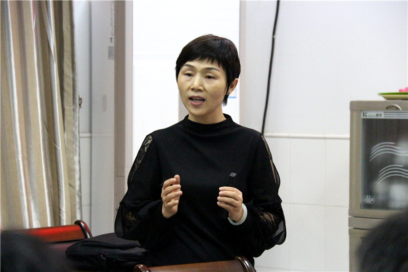 在说课环节,谢梅嫦老师通过对教材、教法、学法的分析,根据学生的认知水平,对自己的所教授的内容进行了详尽的阐述。因为是上课后的说课,谢老师针对自己在每个环节的目标达成度作出了准确的评估,对自己教学设计中的不足及时提出了改进措施。在答辩中,谢梅嫦老师就启发式教学在故事教学中的运用,以及如何提升学生的英语阅读能力提出了自己的见解。谢老师以自己所上的课为例,深入浅出地讲述了在故事阅读教学中使用设问、激发想象、预测故事发展情节等启发式教学,发展学生的思维能力和探究能力。长期担任班主任的她认为提升学生的英语阅读能力,不能仅限于文本的阅读,完成相应的练习,应该有所目的地去提取文本中适合学生的知识点来进行拓展,给学生渗透相关的背景知识,培养学生的各项学科素养。