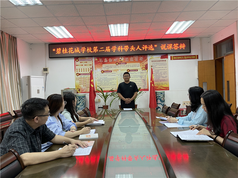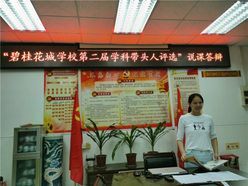 根据“碧桂花城学校第二届学科名师评选与认定活动方案”,活动环节有教案撰写、上课、说课和答辩。在4月20日和4月22日举行的说课、答辩活动中,各参评人展示了自己的风采。