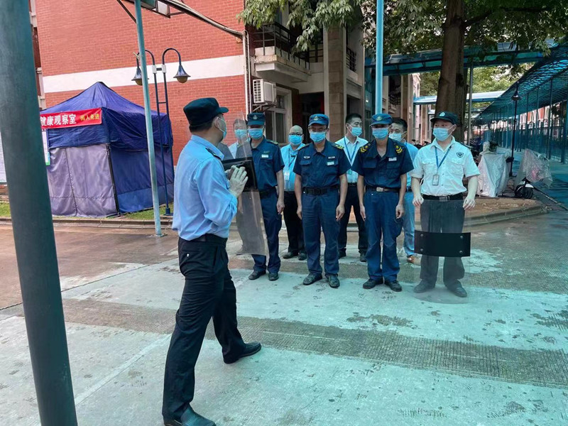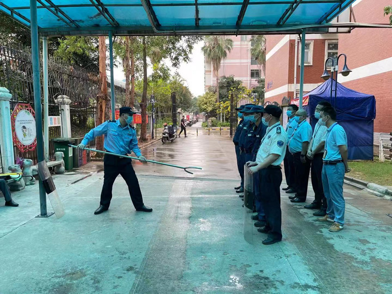 演练开始前,吴警长对所有安保人员针对反恐防暴要点进行了训练。