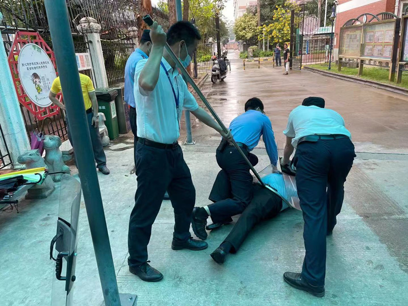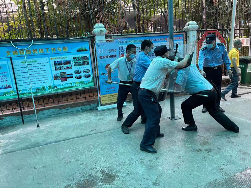 4月25日,为进一步提升我校应对校园突发事件处置能力水平,碧桂花城学校开展了2021年反恐防暴应急演练,我校赵定国副校长主持了本次演练、法制副校长吴润根警长莅临现场指导,碧桂花城社区居委会主任马家爽、治保主任罗健杉及保安部共同参与了演练。