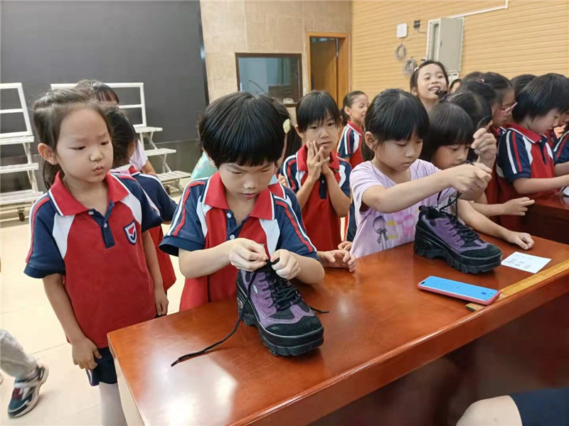 孩子们生活自理能力的形成,有助于培养孩子的责任感、自信心以及自己处理问题的能力,对孩子们今后的生活也会产生深远的影响。为了锻炼孩子们的生活自理能力,增强班级集体荣誉感。5月7日下午,碧桂花城学校一年级在学术报告厅举行了一场别开生面的系鞋带比赛。