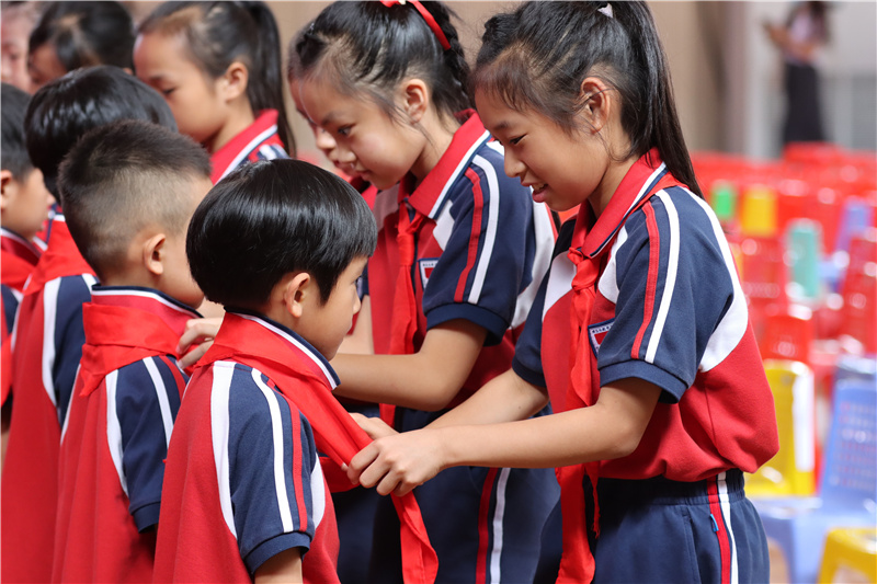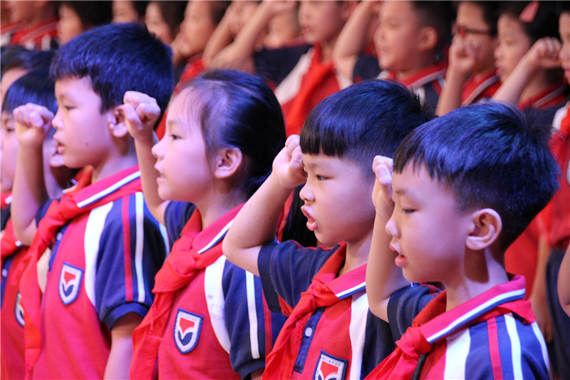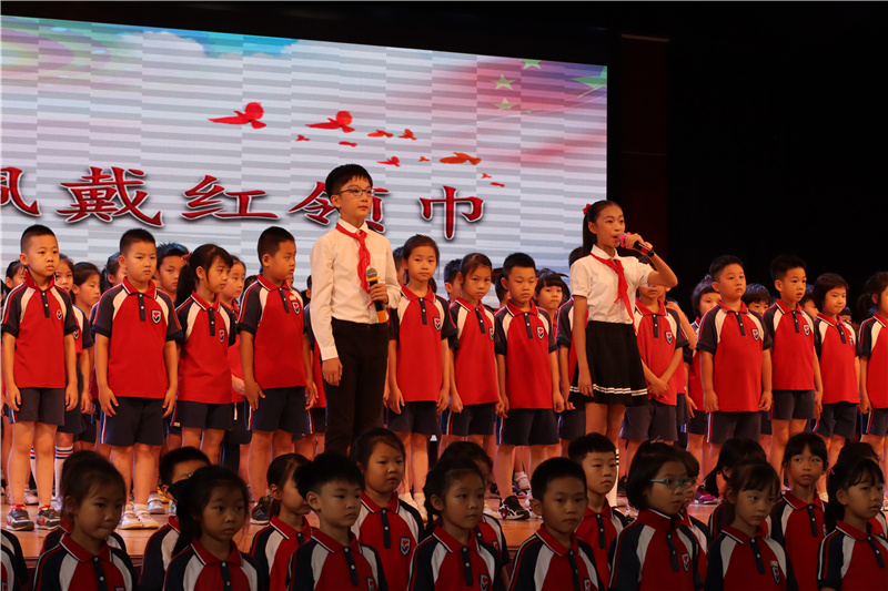 在父母的共同见证下,全体新队员在火红的队旗下接受了心灵的洗礼,明确了肩负的光荣使命,坚定了努力学习、勇敢追梦、长大为祖国做贡献的决心!