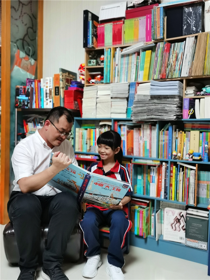 家庭和谐温馨、书香气息浓烈。为了激发孩子的阅读兴趣,培养孩子的阅读习惯,他们全家总动员,一起读书——制定读书计划、建设家庭图书角、定期去图书馆借阅图书、开展家庭读书分享会等。在良好的家庭阅读氛围的熏陶下,孩子阅读兴趣浓厚,阅读习惯良好。