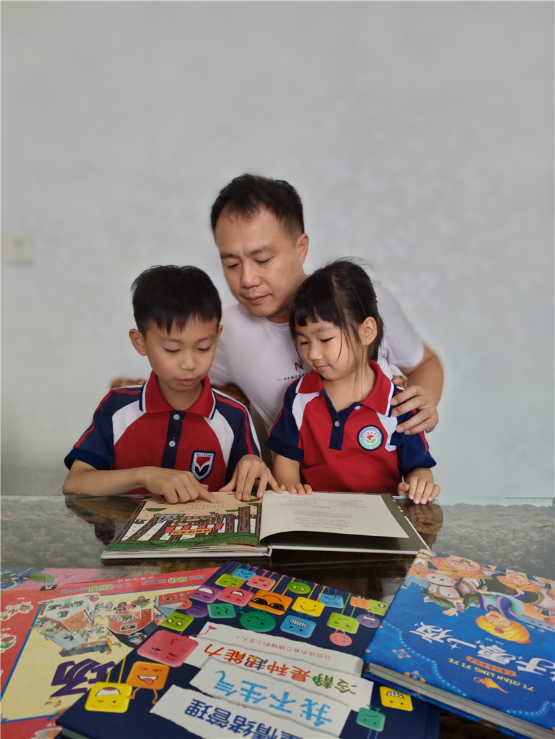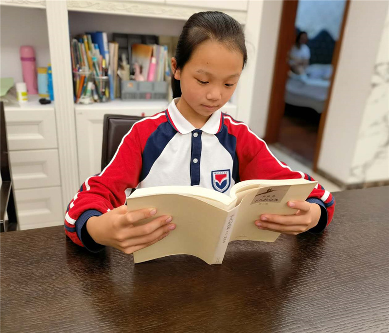 全家都非常热爱读书,家里藏书众多,从小就培养孩子的阅读习惯。制定有效的阅读计划:1.每天至少阅读半小时,并和家长分享阅读感受。2.周末亲子听、看故事,适时进行童话剧表演。3.设计每月读书表格,激励孩子阅读。邝诗同基本每月能读完两本近10万字的文学名著。