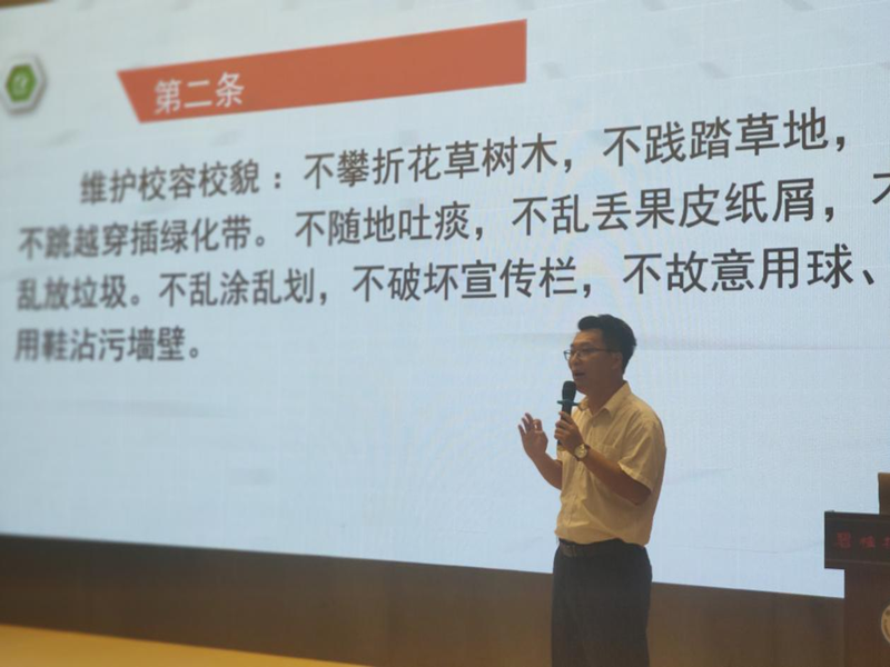 在破冰之旅结束后,花溪的师生再次齐聚学术报告厅,听取了由碧桂花城学校王展鹏主任带来的《养成教育之我与文明交朋友》主题班会,王主任深入浅出地介绍了花城学校的日常规章制度,从就餐就寝讲到了文明礼仪,跟同学们细致地介绍了接下来在花城学校生活学习要注意的各个方面。
