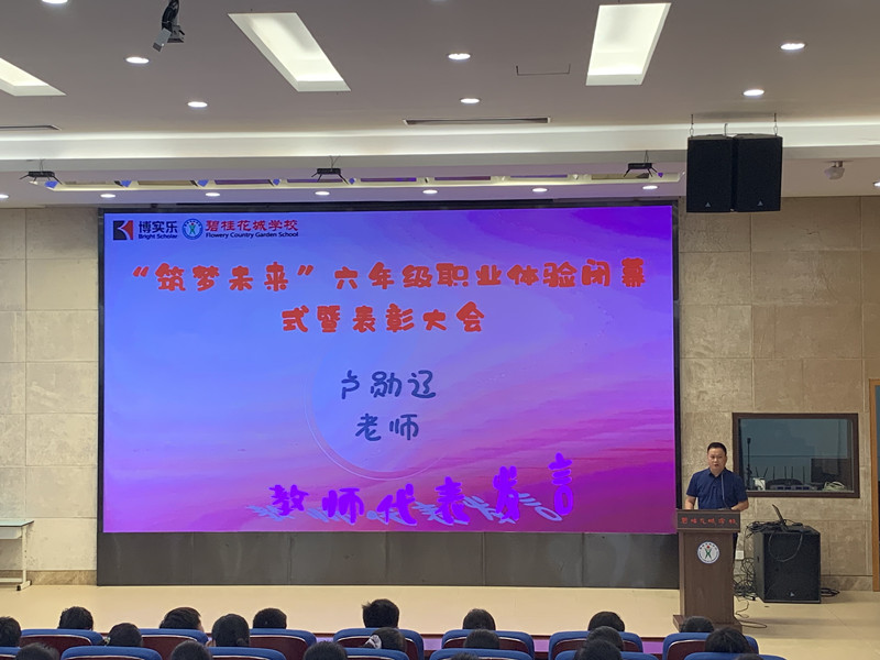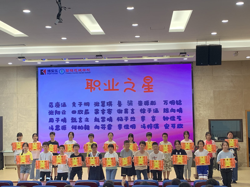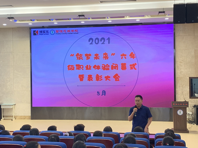2021年5月26日下午,碧桂花城学校举行了“筑梦未来成就自己——六年级职业体验闭幕式暨表彰大会”。