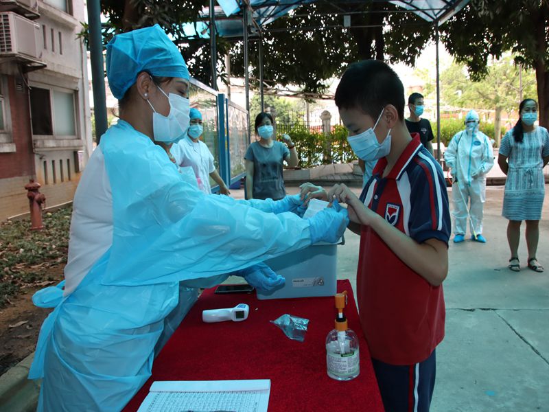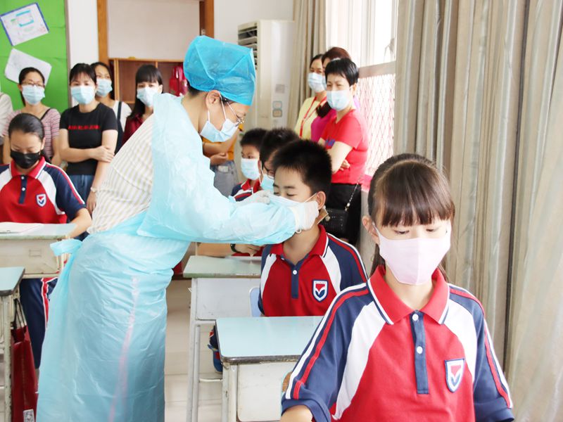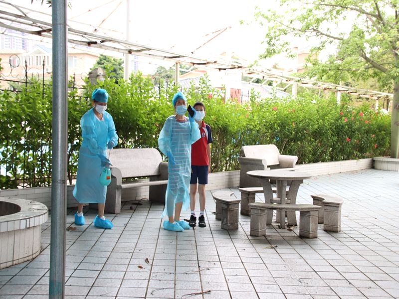 近期,广东部分地区出现了新冠肺炎案例,许多老师和家长甚为担忧。为有效预防和控制病毒感染情况的出现,全面掌握预防传染病的方法和措施,保障我校学生健康成长,进一步完善各种预警机制,2021年6月4日下午,碧桂花城学校举行了疫情防控应急处置演练。在我校疫情防控领导小组的带领下,组织教师代表、学生代表、生活老师、校医、后勤消毒人员等开展了疫情防控应急演练。
