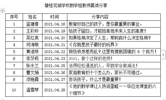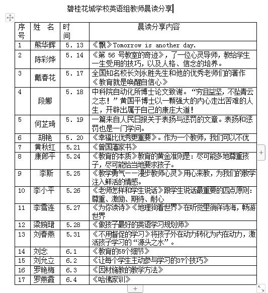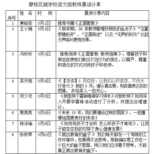 ——碧桂花城学校教师晨读分享活动报道
