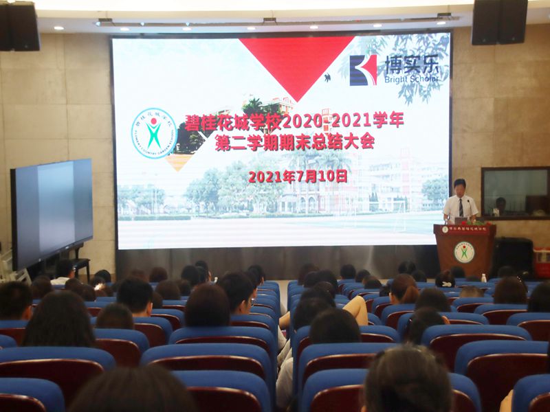 盛夏七月,骄阳似火,岁月匆匆,永不停歇,一个学期又进入了尾声。7月10日下午五时,博实乐碧桂花城学校在学术报告厅举行2020学年第二学期期末总结大会。全体教职员工汇聚一堂,总结大会开始了。