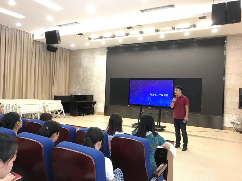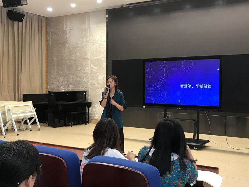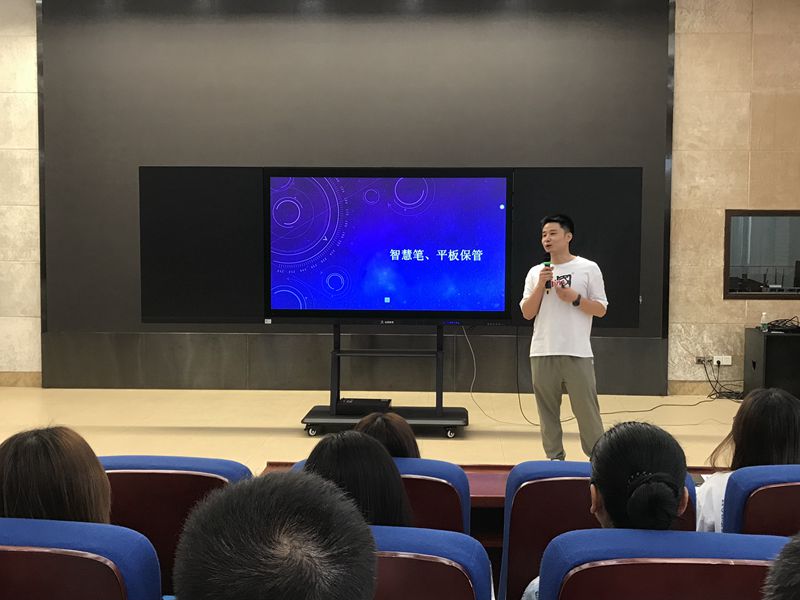 本次活动分为三大板块。第一板块由肖辰经理详细介绍智慧笔与平板电脑的保管以及平板电脑的使用。第二板块由杨怡如老师讲解智慧笔与平板电脑等设备的保管与维护。第三板块由代表老师上台实操。每个环节各位老师都认真聆听,谦虚求教。