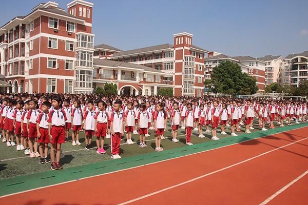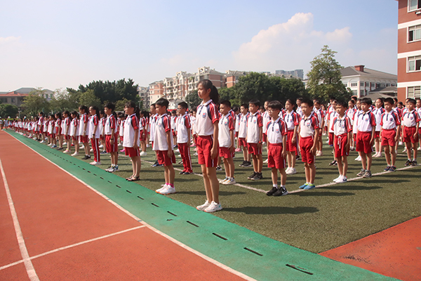 红心向党,不忘初心!在校领导及德育处的指导下,体育组围绕“本道教育”的核心理念,“以人为本,发展个性,健康成长,追求卓越”的德育理念,开展课间操队列队形评比活动,通过一周的严格训练,操场上每一位同学都精神饱满、声音洪亮,队伍行列整齐,步调一致。大多数同学都能严格要求自己,严守纪律,一切行动听指挥,做到令行禁止。