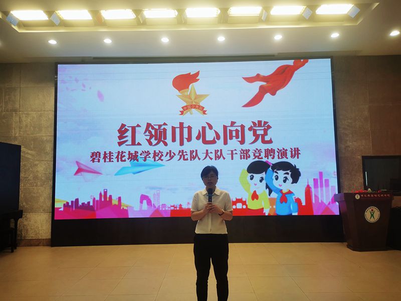 今年,是中国共产党成立100周年。在这个意义非凡的2021年,为给每一位少先队员提供一个服务大家、展示自我风采的机会,增强少先队员的参与感与民主感,形成“自已的活动自己搞、自己的阵地自己建、自己的事情自己管”的花城主人翁意识。9月17日12:30,碧桂花城学校少先队大队部在学术报告厅举行了2021—2022学年少先队大队干部竞选演讲活动。碧桂花城学校德育处主任、少先队大队辅导员及优秀中队辅导员参加了本次评选。