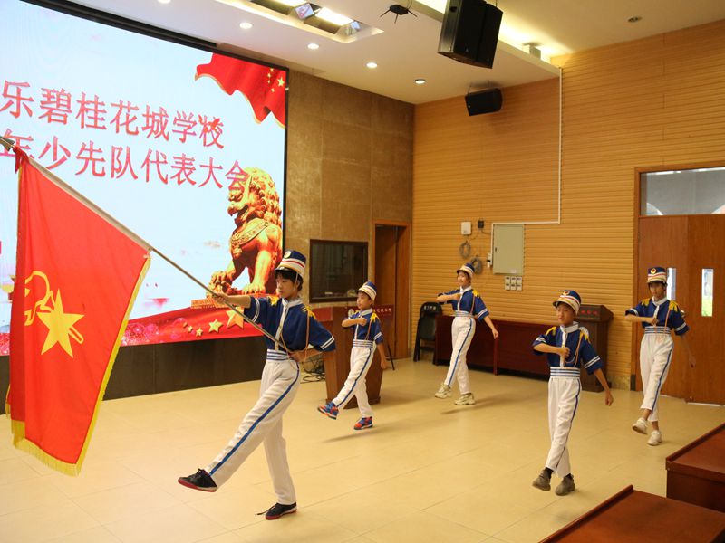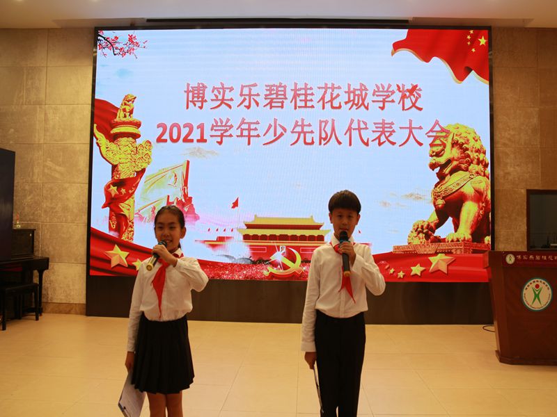 星星火炬召唤我,从小立志做先锋。10月14日博实乐碧桂花城学校在学术报告厅召开第二次少先队代表大会。出席少代会的有学校领导、辅导员代表、大队委成员以及223名少先队员代表。