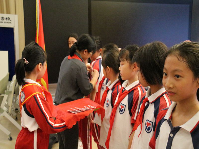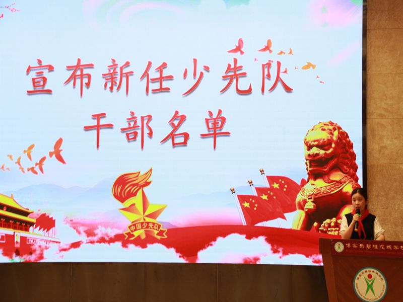 接着,少先队辅导员马婷老师宣读新一届大队委员的名单,并带领他们在队旗下宣誓。这些大队委员都是经过自荐和中队推荐,经历了层层考核和民主投票才脱颖而出的。新任大队委们表示将用自己的实际行动,为队旗增光添彩,让花城的少先队工作更加出色!