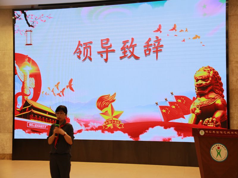 首先,德育处郭园主任为此次少代会致辞。她代表学校向广大少先队员致以问候,向出席今天少代会的各位代表表示真诚的感谢,并希望队员们坚定信念、勤奋学习、健康成长,努力成为德智体美劳全面发展的时代新人。