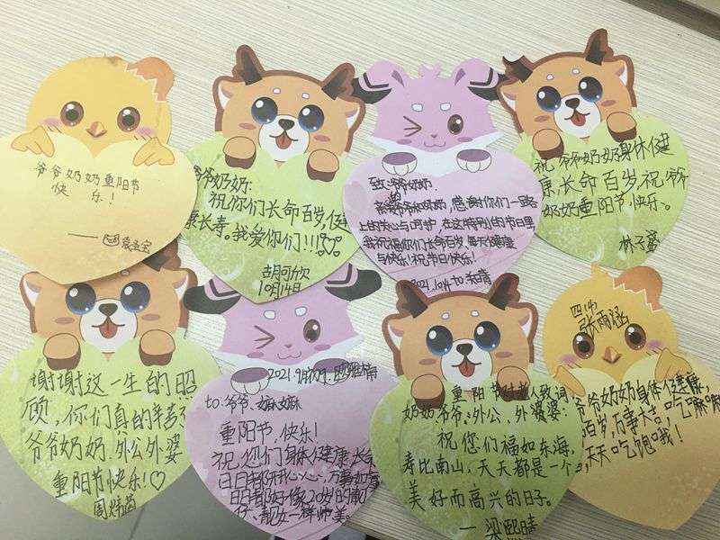 四年级老师们通过开展“重阳敬老”主题班会,让孩子们知道农历九月初九是我国的传统节日重阳节,了解重阳节的来历和风俗习惯,引导孩子尊老爱老敬老,孩子们更是为家里老人送上最真挚的祝福,表达对老人的关心。