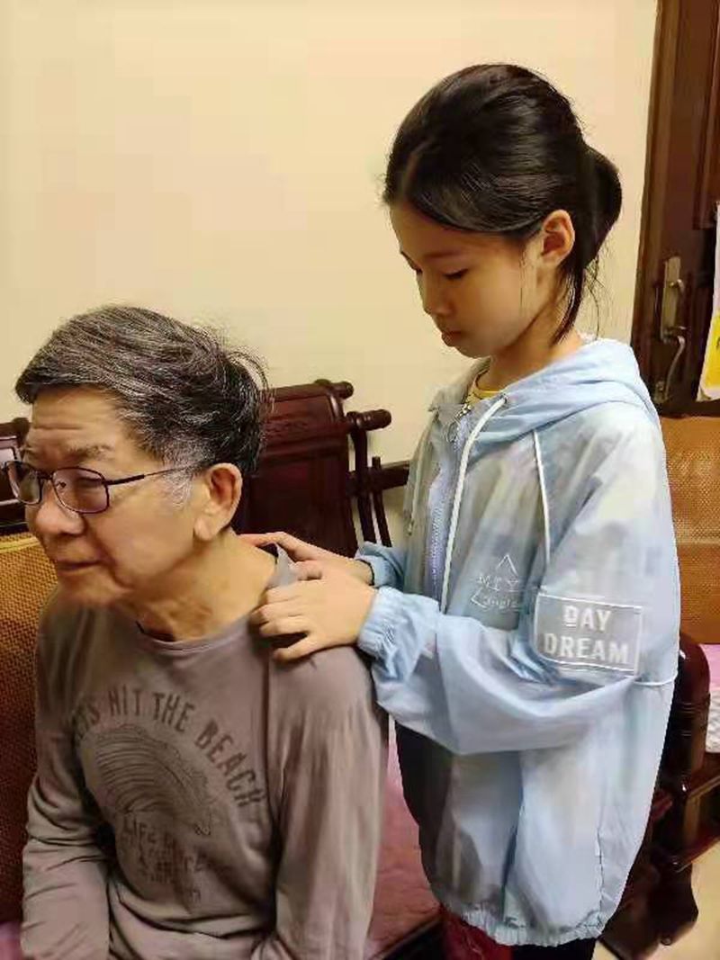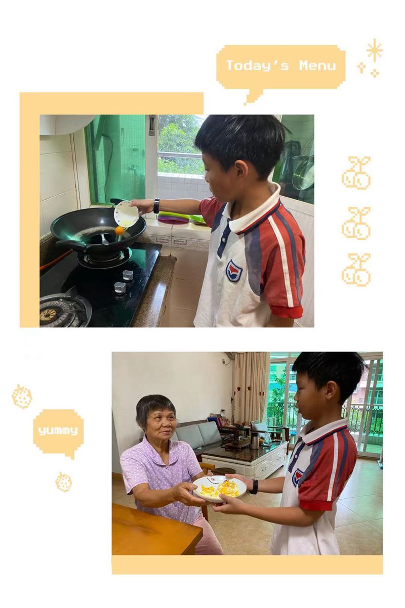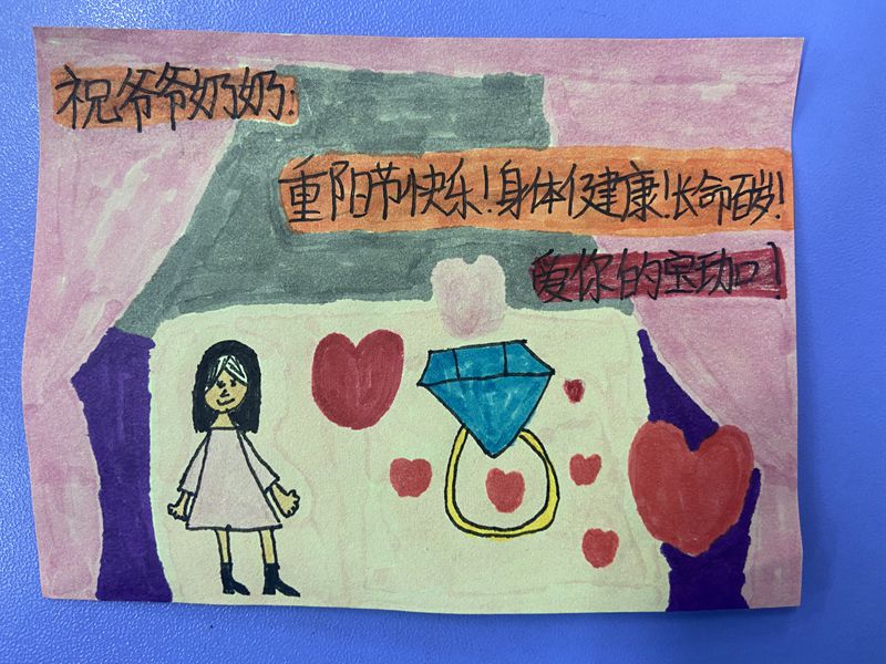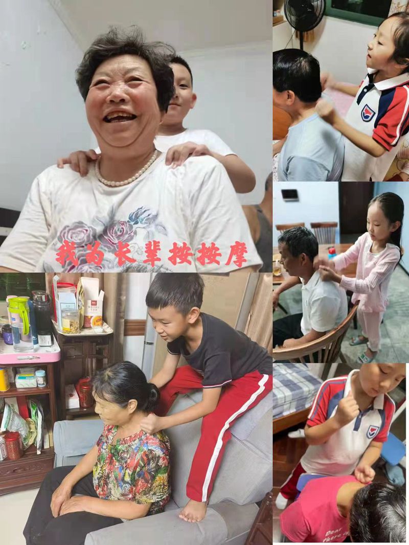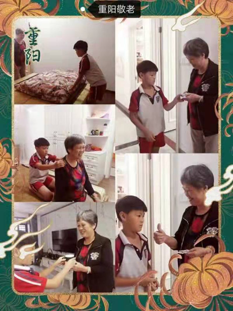 二年级小朋友一听说重阳节都很兴奋,可以好好地陪陪爷爷奶奶外公外婆了。放学回到家后,有的陪奶奶择菜,有的陪爷爷搞卫生,有的给奶奶捶捶背,有的……在与长辈们的和睦相处中体验浓浓的亲情,感受幸福的生活。