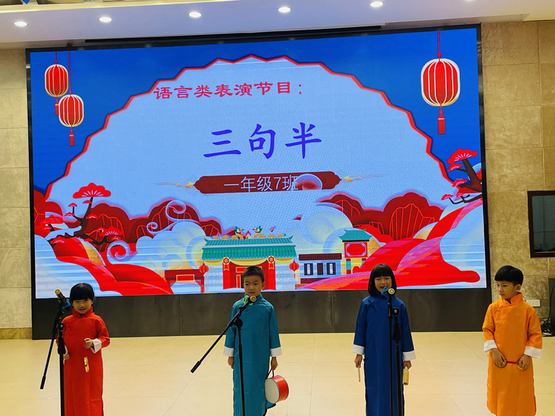 一年级同学带来了精彩纷呈的节目:激情澎拜的爱国朗诵、活泼生动的舞台剧、幽默风趣的三句半和朝气十足的古诗背诵,着实让人耳目一新,大饱眼福!
