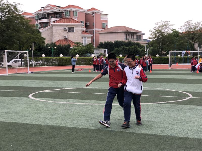 比赛还没开始,参赛队员们就已经绑好了腿,摩拳擦掌,积极备战。比赛正式开始,队员们都用胳膊紧紧地抱着自己的搭档,双眼紧盯前方,边轻声齐喊着“一二,一二”的口令,边大步流星地向前飞奔。每个参赛同学都在奋勇争先,他们心里想的便是协作、团队、荣誉。