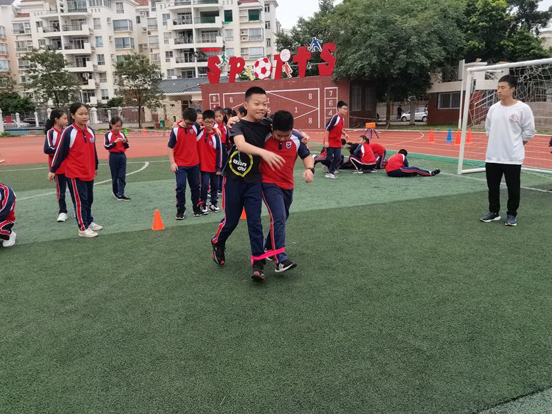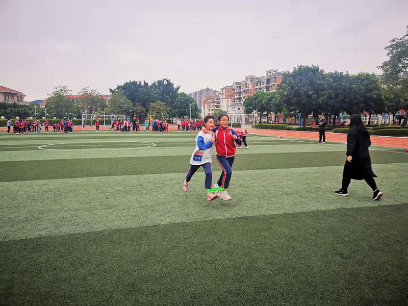 为了丰富同学们的课余生活,锻炼同学们的团结协作能力,近日,我校五年级利用课余时间,举行“两人三足趣味接力”活动。同学们个个积极踊跃,誓要为班级争得荣光。