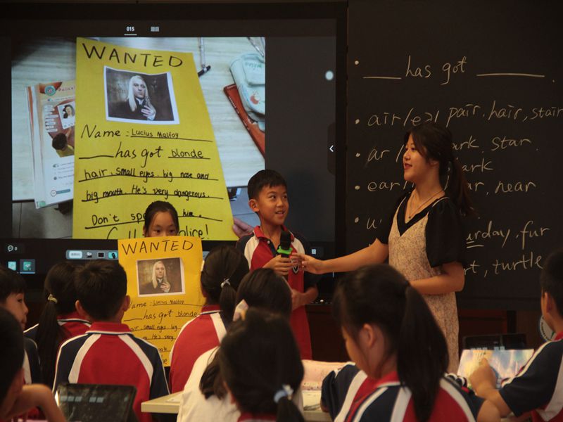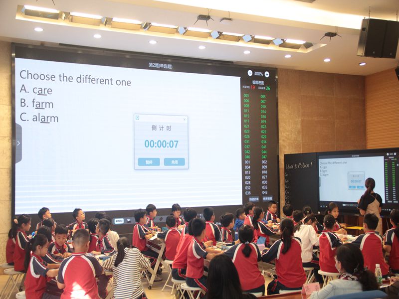 首先,由我校周晓楠老师执教的“新思维英语四年级上Police”一课拉开活动帷幕。整节课以学生为主体,精心设计。课堂上周老师与学生们热情互动,充分发掘教材资源,创设了真实连贯的教学情境。尤其注意培养学生phonics自然拼读的核心素养能力。结合我校最新引进的智慧课堂纸笔互动、抢答、抽选和现场答题等各项先进功能展开教学。学生们都紧跟老师的步伐,积极发言,在知识的海洋里遨游。