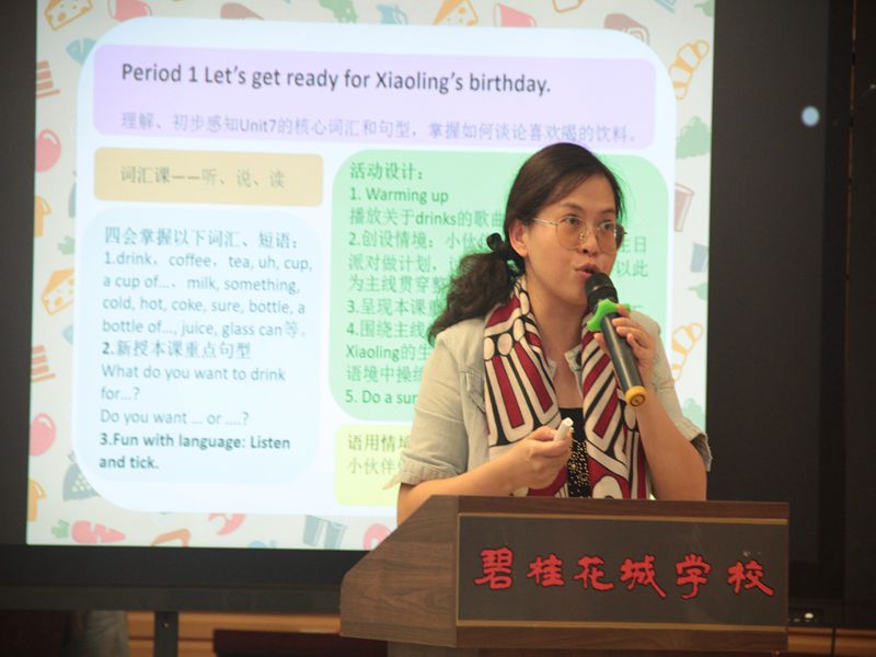 其次,是由广州市骨干教师陈春老师作精彩的讲座。讲座以“双减背景英语课堂的思考与实践”为主题。陈老师指出“双减”背景下的英语教学必须是高质高效的,是以实现高质量育人为目标的。而高效的英语教学离不开高质量的课堂、高质量的学习。陈老师还以州版五年级上册英语教材Module 4为例, 对如何进行单元模块的整体整合、分课时做了深入的指导。陈老师表示单元整体模块的整合要成大处着眼,从小处着手。遵循整体备课模式,着重模块的整体性、递进性和关联性。陈老师还指出教师在平时的教学中一定要注重学生的高阶思维引导,在课堂中创造良好的问题情境,在不同的教学环节中设置不同层次、不同目标的的问题。这是培养学生思维能力的最佳途径。除此之外,老师还以一些实际例子解答了如何在“双减”背景下优化英语作业设计。聆听了陈春老师的讲座真是受益匪浅啊!