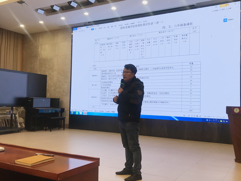 王展鹏主任就本学期智慧课堂培训安排及评价要求作了细致的讲解。定标准,促成长,充分挖掘学科教学与“智慧课堂”平台下的信息技术的高度融合。