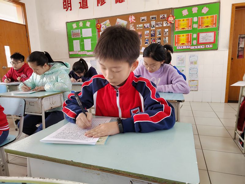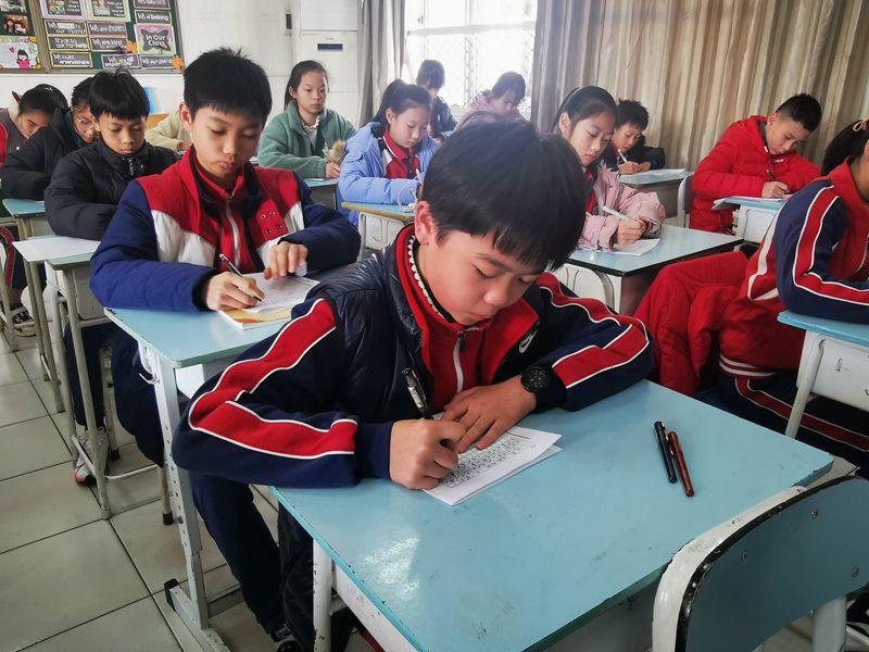上午9时整,六年级各班语文老师组织本班学生安静就坐,老师现场分发比赛用纸,9:10分比赛正式开始,历时40分钟。随着开赛铃声的响起,同学们在回忆中搜索成长的碎片,沉思中将岁月的足迹串联,思绪在脑中飞扬,情感于笔尖流露……