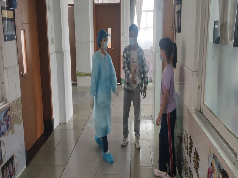 此时,一学生在通过体温检测处时被发现体温异常,值日校医上前反复确认该生未去过任何中高风险地区后上报班主任与校医处,学生被引导至观察室并联系家长到校带学生去医院就医。另一学生在通过体温检测处时被发现体温异常,值日校医上前反复确认后得知该生曾在中高风险地区逗留,学生被引导至观察室。校医进行二次测温排查,立即上报校领导启动我校新冠肺炎疫情防控应急处置预案及报区教育局安排120接送到医院。