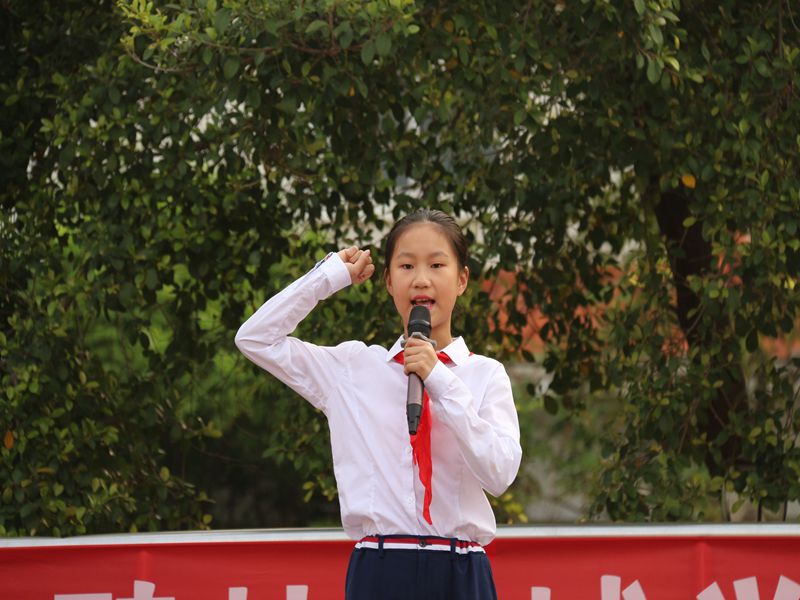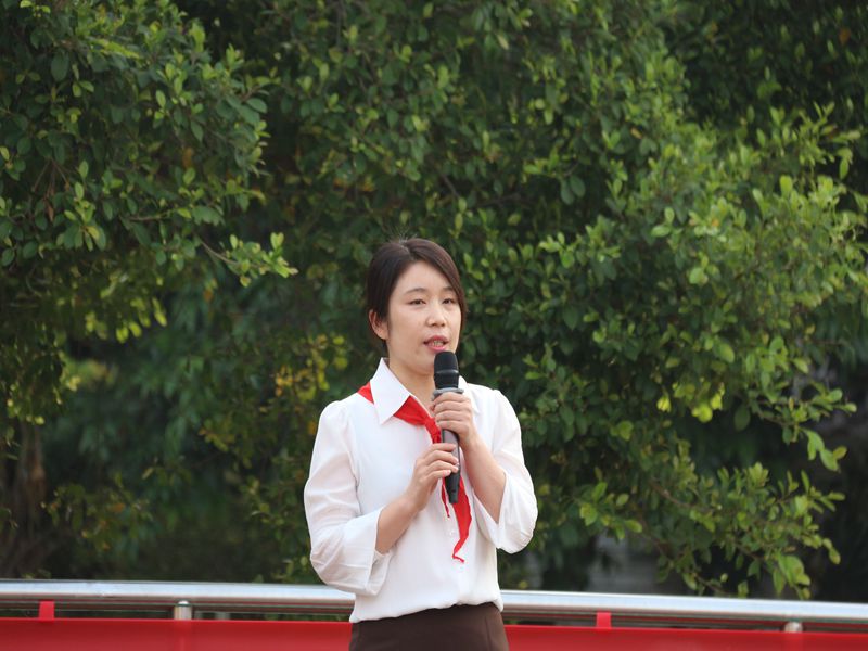 宣誓完毕后,马婷主任还为新队员们送上寄语。她愿新队员们在星星火炬的指引下,从小立志,学会做人,全面发展,以饱满的热情、昂扬的斗志刻苦学习,用优良的品质、强健的体魄、良好的行为习惯为学校增光添彩,为鲜艳的红领巾争得荣耀!