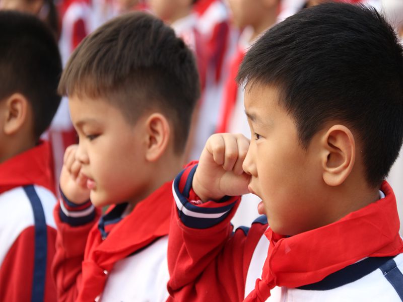 鲜艳的红领巾在胸前飘扬,孩子们神采奕奕,脸上洋溢着激动自豪的微笑,这是他们光荣的时刻!