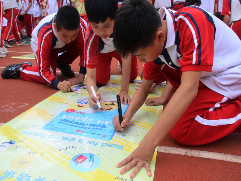 最后,学生们有序地在推荐书目的海报上签下了自己的名字,他们签的是一种决心,他们签的是一种希望。相信他们将会以实际行动响应读书的号召,开启幸福的读书之旅。