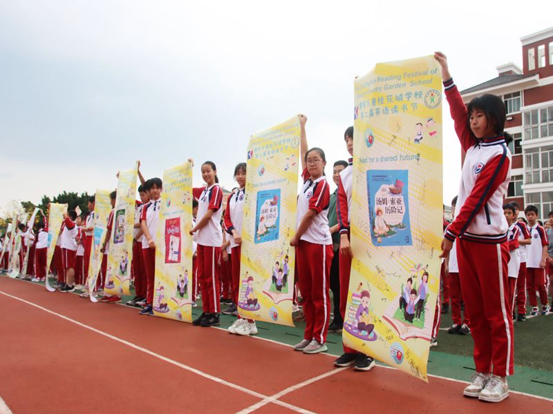 3月17日下午,博实乐碧桂花城学校全体师生齐聚操场,隆重举行了一场以“阅读向未来”为主题的英语读书节开幕仪式。