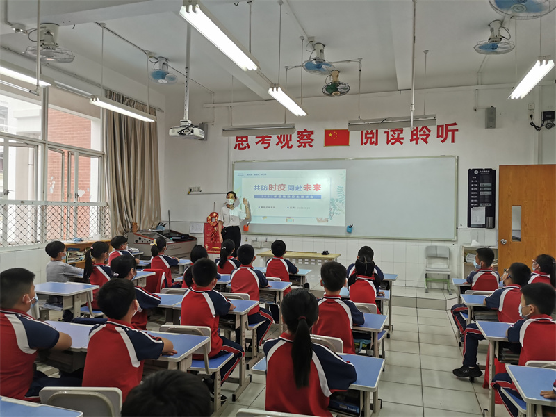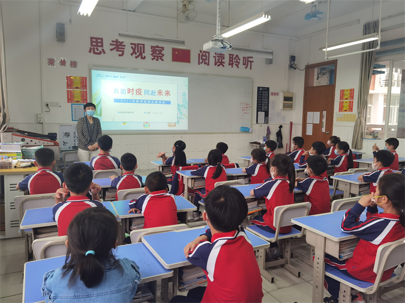 为了让每个孩子都明白防疫防控的重要意义,为进一步做好疫情防控工作,提高学生的防范意识,2022年3月22日,博实乐碧桂花城学校各班召开了新冠肺炎疫情防控主题班会。