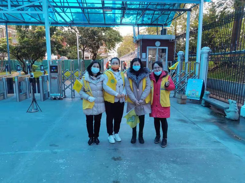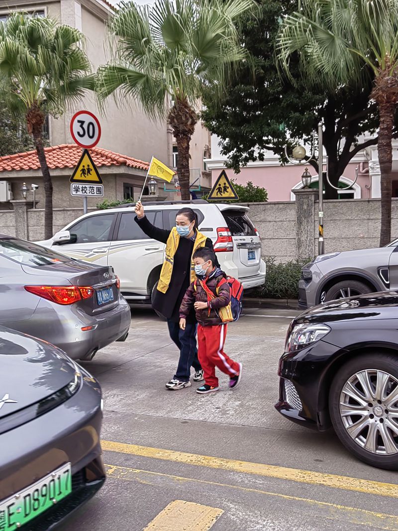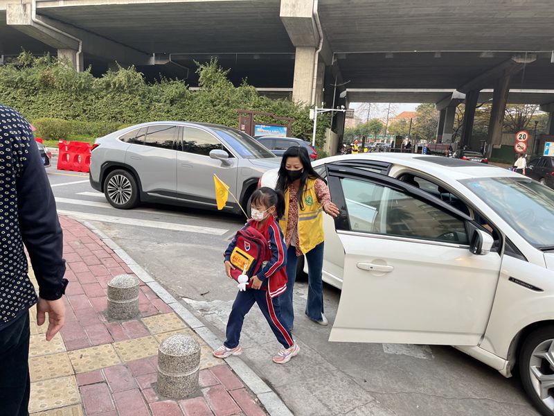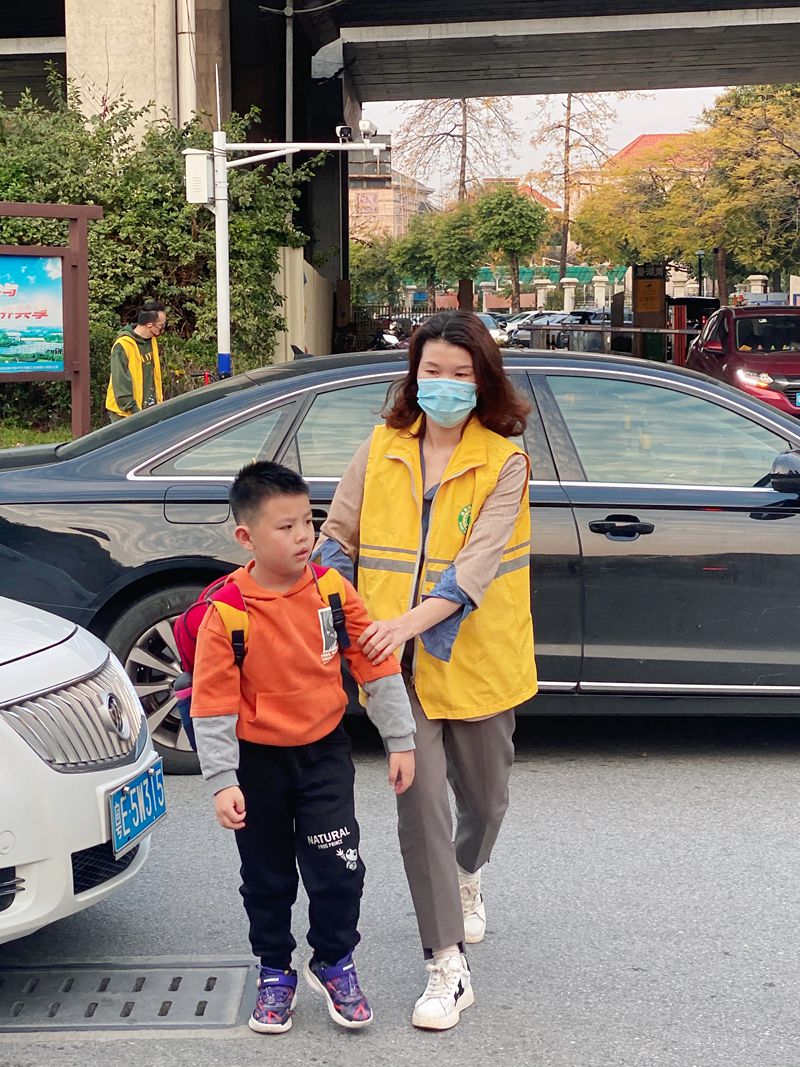他们面带微笑,亲切问候,并轻声叮嘱孩子及家长注意安全;他们的每一个动作、每一句话语都让人倍感友爱。