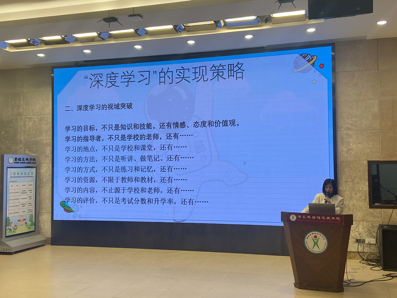 强调主动参与、积极建构,全面发展的深度学习是促进花城学生五育并举的重要途径,是当前教育教学改革的实质及方向。2022年3月28日晚,博实乐碧桂花城学校田桂花常务副校长在学术报告厅为全校老师带来了“基于发展学生核心素养的深度学习研究”的主题报告。