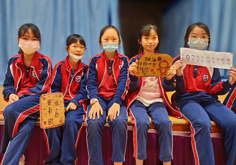 四(3)班同学说:“我们班的口号是——四年三班,勇夺桂冠。赛前我们会有一点点紧张,但有同学们的陪伴,团结就是力量,相信我们能取得好成绩,为班级争光。”