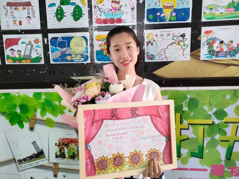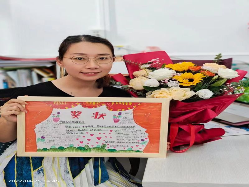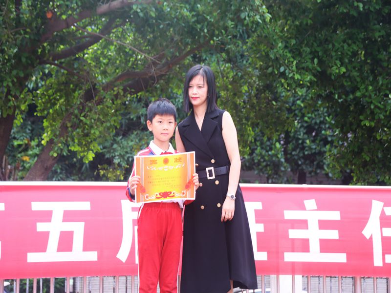 为了更好地表达对花城班主任们的热爱,学校还组织了学生进行班主任节节徽的设计比赛,也借开幕式的契机,进行了隆重的颁奖仪式,由我们尊敬的田桂花副校长给获设计特等奖的小设计者颁发了奖状。