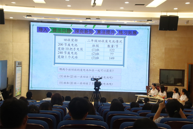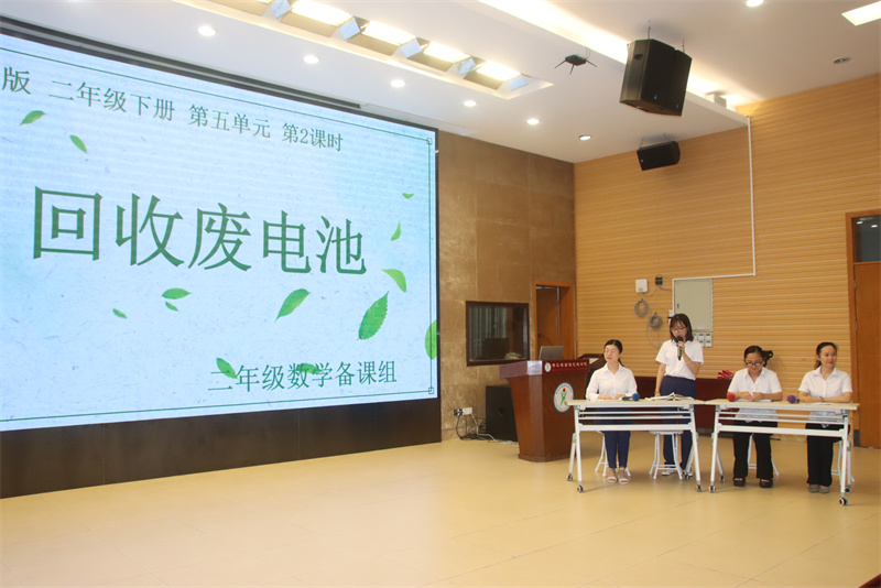 集体备课是提高教学效率,促进教师专业成长的有效途径。4月25日晚上,碧桂花城学校二年级数学备课组全体老师在学术报告厅给全校教师展示了《回收废电池》一课的集体备课过程。