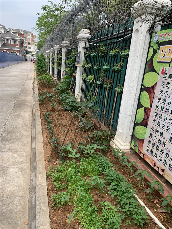 著名教育家陈鹤琴曾说过:“把大自然、大社会做出发点,让孩子直接向大自然、大社会去学习。”在博实乐碧桂花城学校有一条绿色长廊,各班在这里种满各种当季蔬菜。
