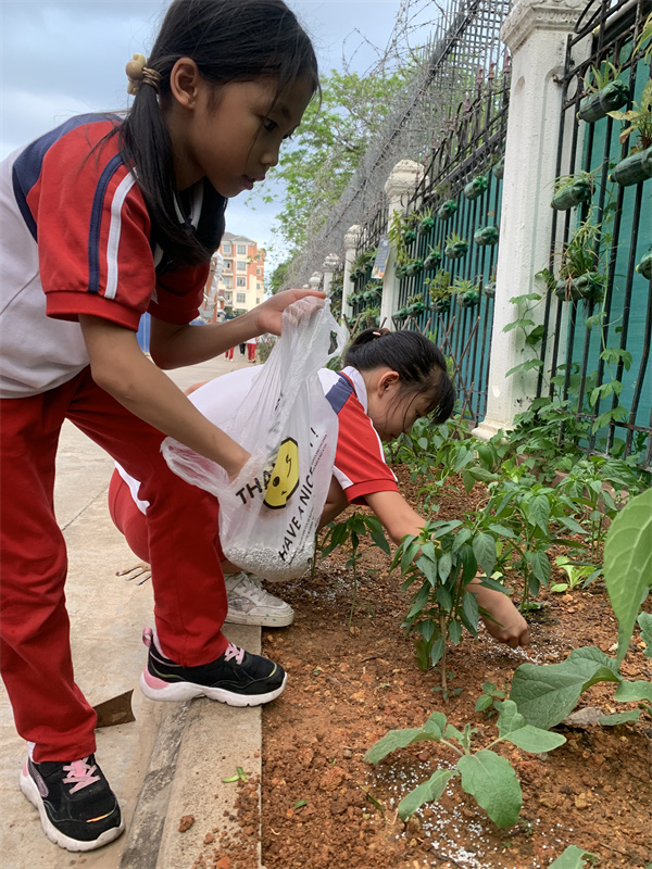 同学们可喜欢这方小菜园啦。或在劳动课,或在课后,总能看见同学们在小菜园劳作,他们浇水、除草、施肥、牵藤......细心养护着本班的小菜园,就像妈妈们呵护自己的宝宝一样。