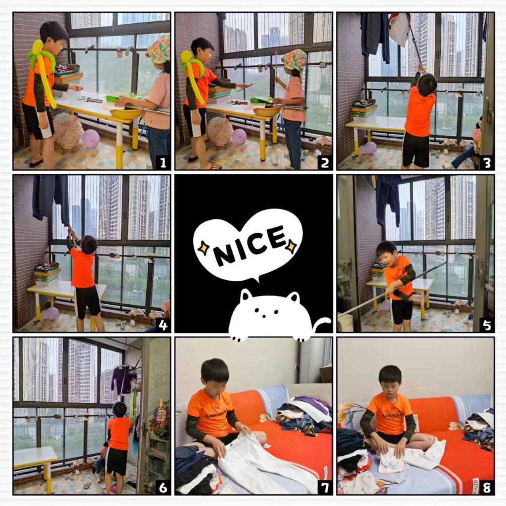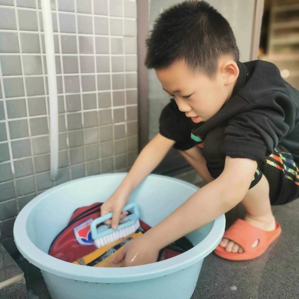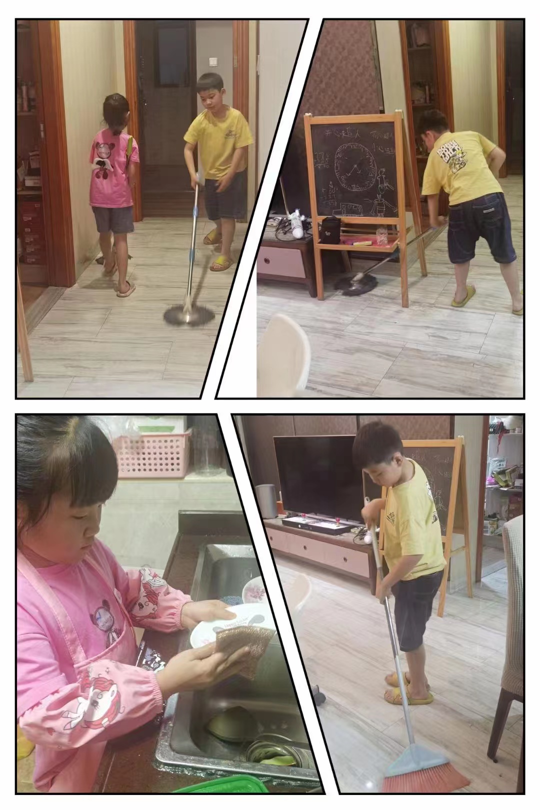 学生在假期居家期间,积极响应劳动节的活动号召,主动在家做家务:有的洗碗,有的扫地拖地,有的择菜,有的洗衣服刷鞋,有的整理房间……