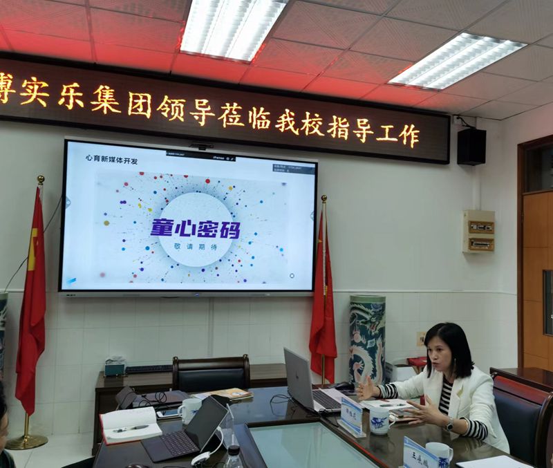 16日下午,博实乐碧桂花城学校田桂花常务副校长首先向与会领导介绍了花城学校的办学特色和智慧课堂教学情况。田校长从花城学校的“本道课程”和“本道课堂”两个方面向与会领导详细介绍了我校的基础类课程、学科拓展类课程、乐道园课程、科学STIM课程、基于家国情怀的综合实践课程,以及本道课堂的基本流程和评价模式、智慧课堂云平台的实践运用、花城学校学生综合素质评价表和花城学校最新开发的“童心密码”栏目,这种心育新媒体运营将通过学校的视频号、抖音号等渠道加强对学校的宣传与推广。