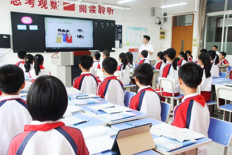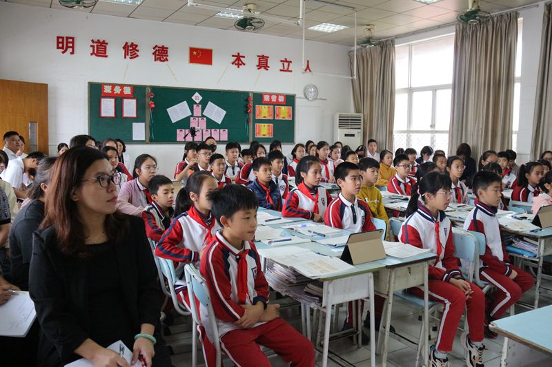 语文组由五年级廖卫根老师执教《跳水》一课。在“本道教育”思想的引领下,整堂课以学生为中心,利用学生提出的四个问题组织教学,给学生时间去朗读、思考、讨论和交流。课堂上,学生积极主动,老师睿智引导,加上“智慧课堂”教学平台的助力,整节课流畅、活泼且高效,获得听课领导和老师的一致好评。
