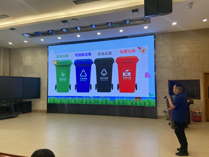 为了更加洁净的校园环境,加强垃圾分类回收意识,让“低碳,绿色,环保”的理念深入人心,让学生们成为将垃圾正确分类的小达人,四年级全体师生在学术报告厅参与了本次主题活动。卢勋辽级长从以下六个方面为师生们细致全面地讲解了垃圾分类的相关知识,包括1.什么是垃圾分类?2.垃圾分类的好处。3.垃圾可分几类?4.如何来垃圾分类?5.知识竞赛6.在生活中,你怎么进行垃圾分类呢?