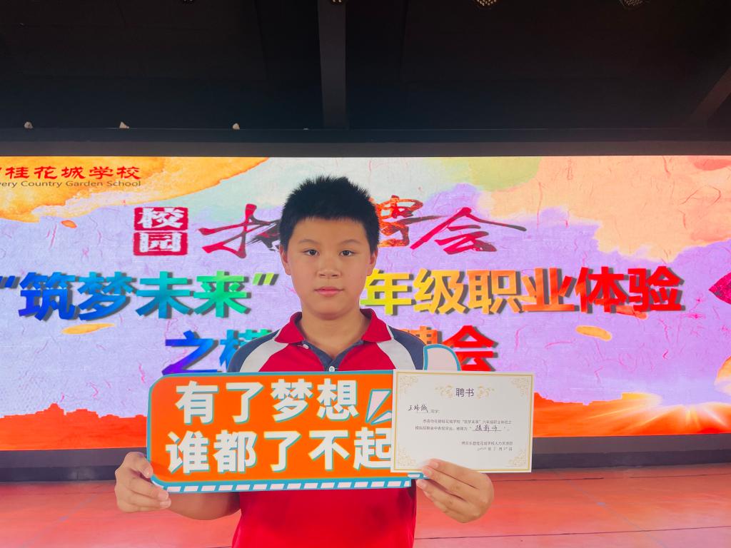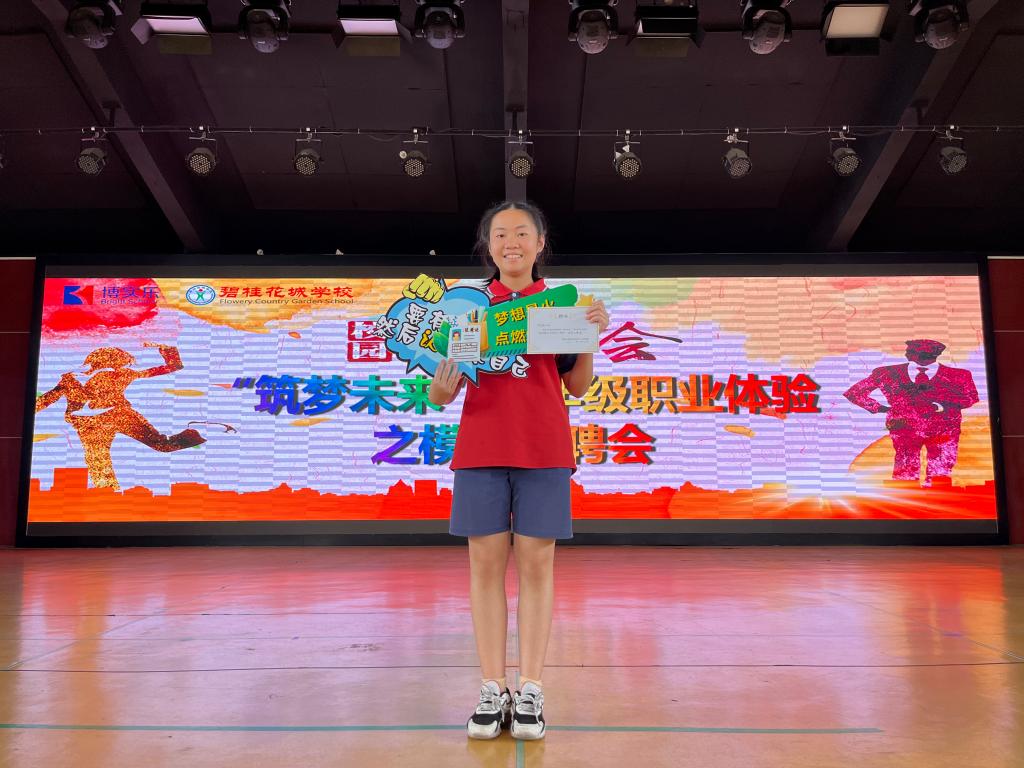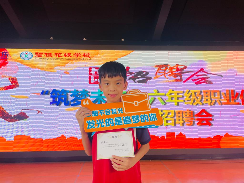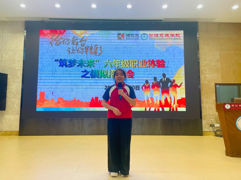 为了深入开展生涯规划教育课程,提升同学们的就业意识,让同学们通过职场体验,检验与梳理自身的兴趣、能力,尽早规划未来长远发展道路,为同学们提供一个展示自我、挑战自我的机会。2022年5月20日,碧桂花城学校召开了第二届“筑梦未来”职业体验之模拟招聘会。