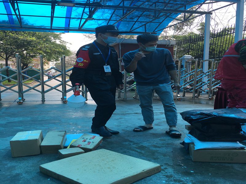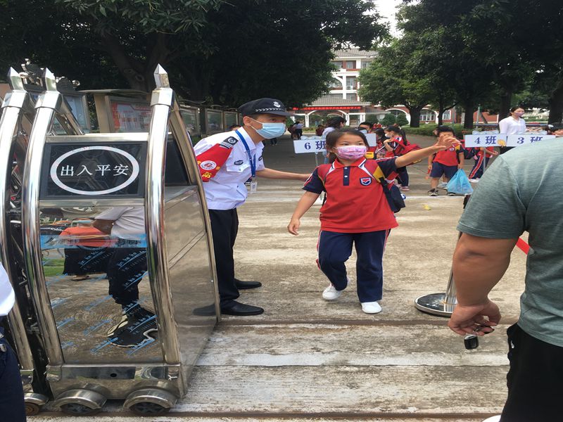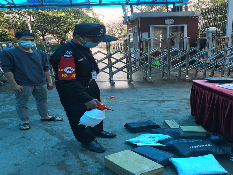 上午8:10,校园响起了朗朗读书声,此时正是外校人员来访的时间。保安人员精准有效地识别人员身份并快速完成测量体温、健康码查验,提高往来人员的通行速度。针对校内收取的快递物品,保安人员要对每一件物品都要进行消毒并摆放整齐,认真细致地对待每一项工作,认真落实防疫要求,保障师生安全。
