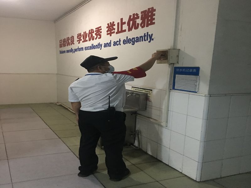 8:30,保安同志开始在校内巡逻,逐一巡查消防设施设备,对重点区域安全隐患排查,预防事故,及时处理各类突发事件,为全体师生的安全保驾护航。