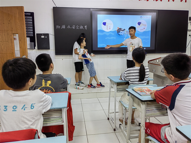 活动中,学校还通过校园广播、国旗下讲话、LED电子显示屏等形式播放防溺水宣传标语,全方位宣传防溺水知识,营造浓厚的防溺水宣传氛围。学校坚持“预防为主、教防结合”,多层次、多渠道做好安全教育,切实提高师生和家长的防溺水知识,形成学校、家庭、社会齐抓共管的联防机制,有效杜绝学生溺水事故的发生。
